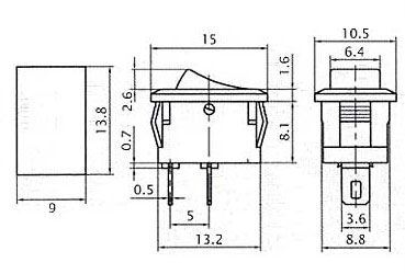 Kolébkový spínač s aretací v krajních polohách 1A/250V, 1x spínací kontakt, miniaturní