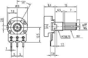 Plastový potenciometr uhlíkový jednoduchý lineární 100k