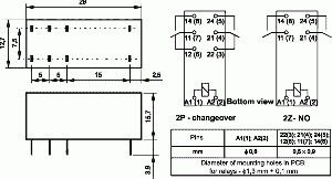 Relé 3VDC, 8A, 2x přepínací kontakt