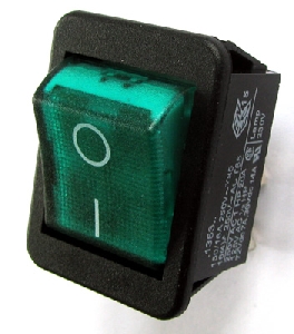 Hmatník: zelený s popisem 0-I, podsvětlený doutnavkou 230VAC