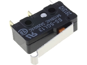 Mikrospínač 125VAC/5A s páčkou 15.8mm se zaobleným koncem.