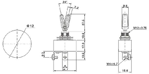 Páčkový spínač s aretací v krajních polohách 50A/12V, 1x spínací kontakt