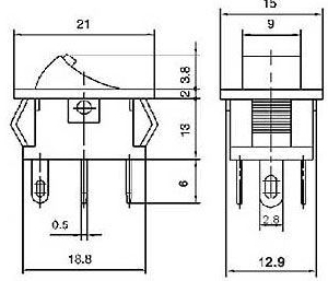 Páčkový spínač s aretací v krajních polohách 3A/250V, 1x spínací kontakt, prosvětlení LED