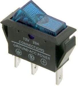 Kolébkový spínač s aretací v krajních polohách 20A/12VDC, 1x spínací kontakt
