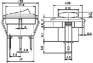 Kolébkový spínač s aretací v krajních polohách 10A/125V, 1x přepínací kontakt