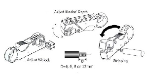 Odizolovávač koaxiálních kabelů RG59, RG58, RG6, RG62.