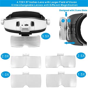 Tato lupa s čelenkou je ideální pro přesnou práci zblízka a nechává vám volné ruce pro čtení, tvoření, šití, vyšívání, pletení, korálkování a koníčky.