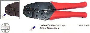 Lisovací kleště pro izolované fastony a ostatní kabelové koncovky dle barvy izolace (rudá, modrá, žlutá).