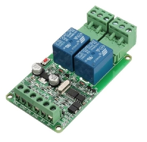2-kanálový Modbus relé modul vybavený 8bitovým MCU a komunikačním čipem RS485.