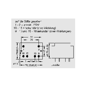 Transformátor 30VA, 230VAC/2x12VAC-1.25A, zalitý, piny do plošného spoje