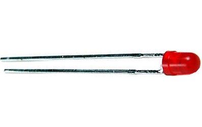 LED dioda 3mm rudá 565nm rozptylná 35° 2mcd 2mA Uf 1.8V