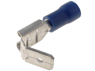 faston 6.3mm zásuvka s odbočkou vidlice s plast.límcem do pr.2,5mm