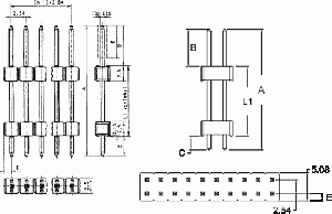 Jumperová lišta variabilní 1-řadá, 20pin, rozteč 2.54mm, zlacená, přímá, výška 37.8mm.