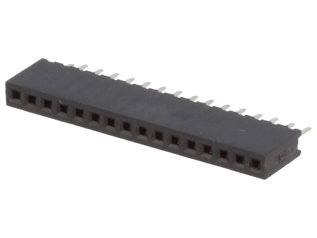 Dutinková lišta 1-řadá, 16pin, rozteč 1.27mm, zlacená, přímá, výška 4.4mm.