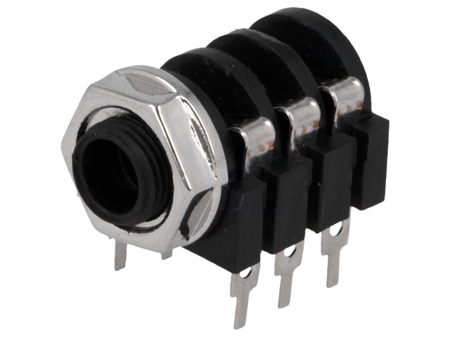 JACK 6.35mm stereo zásuvka do plošného spoje se stříbrnou matkou
