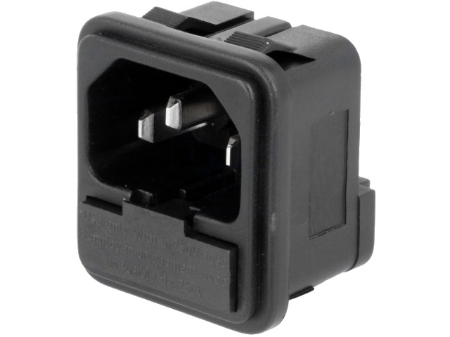 Napájecí přístrojová vidlice na panel s pojistkovým pouzdrem, zamačkávací, IEC60320 typ C14, 6.3A