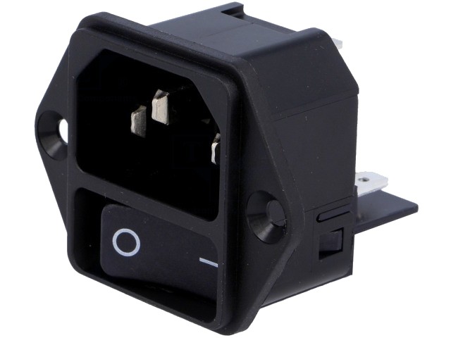 Napájecí přístrojová vidlice na panel s vypínačem IEC60320 typ C14, 12A.