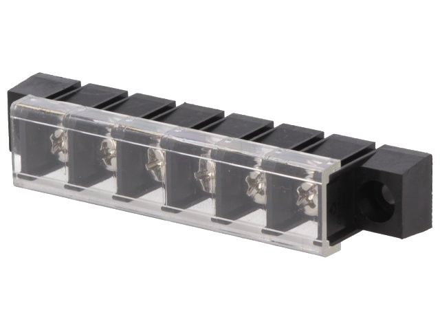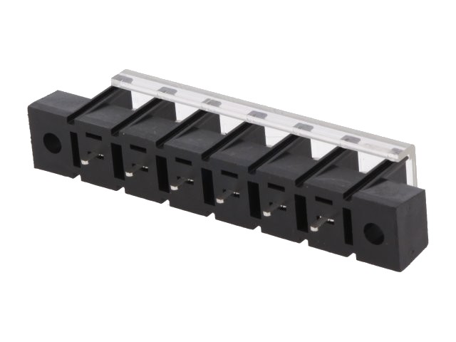 6-pólová svorkovnice do plošného spoje nebo panel, přímá, s krytkou, RM10mm.