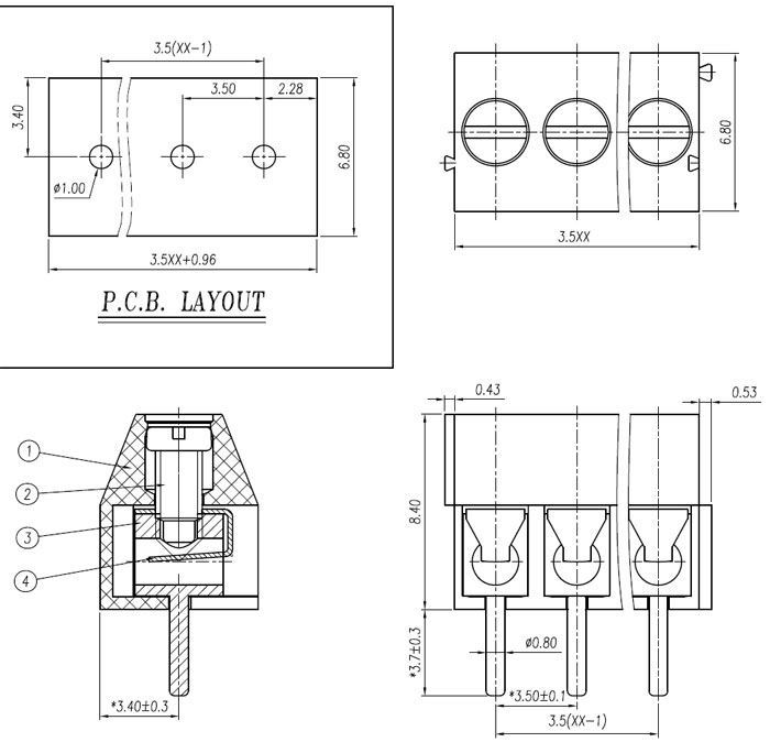 2-pólová svorkovnice do plošného spoje úhlová, RM3.5mm.