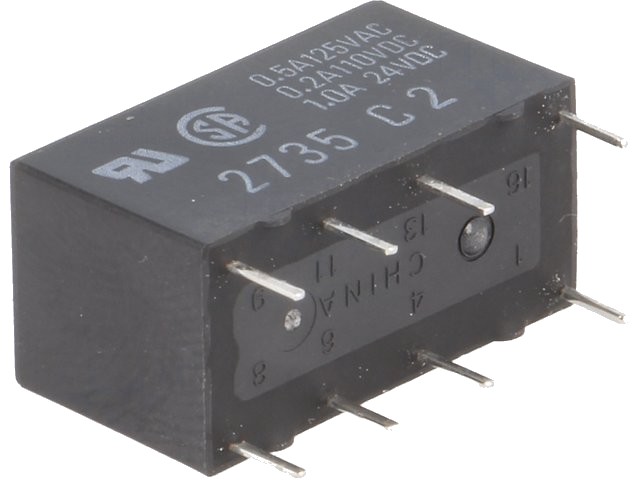 Subminiaturní relé 12VDC, 2A, 2x přepínací kontakt, vyšší citlivost