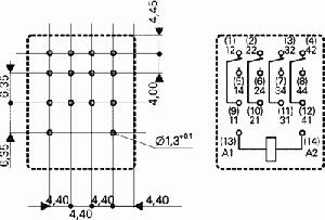 Konfigurace kontaktů: 4PDT (4x přepínací kontakt)