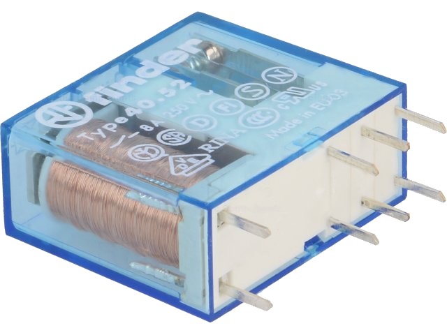 Relé 12VDC, 8A, 2x přepínací kontakt.