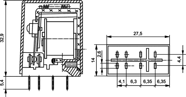 Konfigurace kontaktů: DPDT (2x přepínací kontakt)