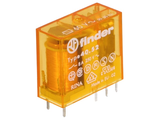 Relé 60VAC, 8A, 2x přepínací kontakt