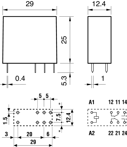 Konfigurace kontaktů: DPDT (2x přepínací kontakt)