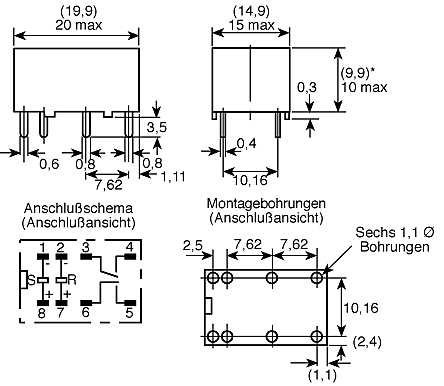 Zatížitelnost kontaktů AC (při odporové zátěži): 8 A / 250 VAC