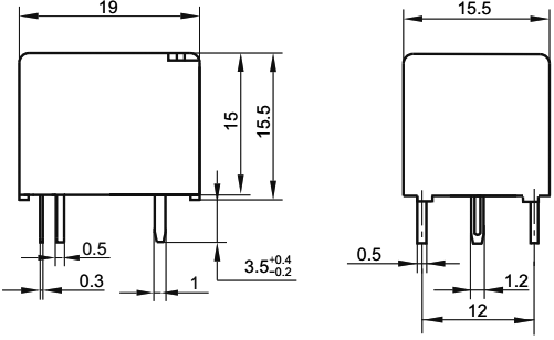 Vnější rozměry: 19 x 15.5 x 15.5mm