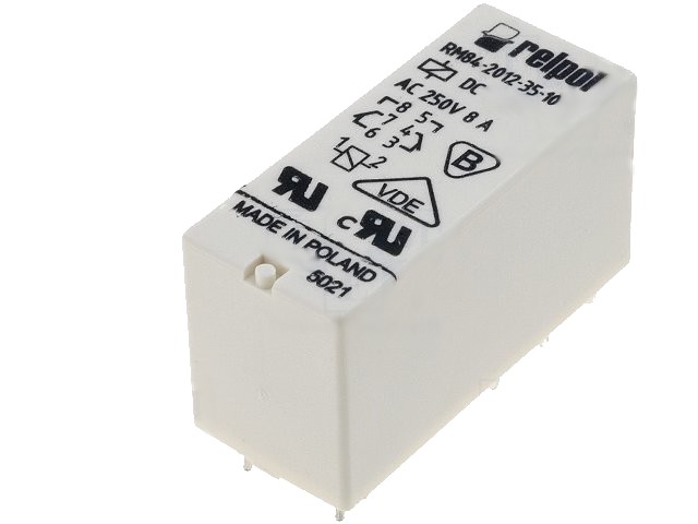 Zatížitelnost kontaktů AC (při odporové zátěži): 8 A / 250 VAC