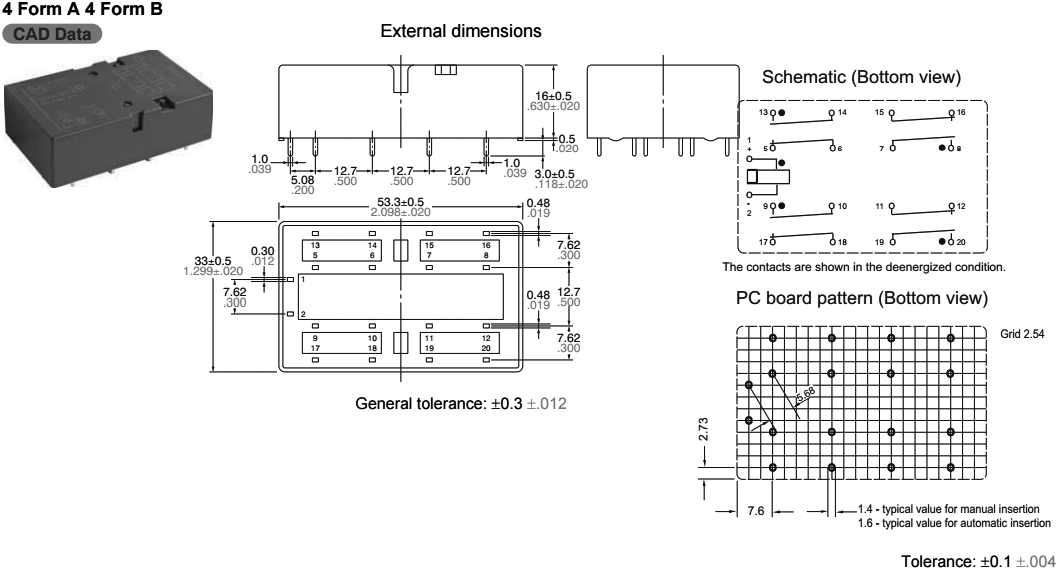Konfigurace kontaktů: SPST-NO x4 (4x spínací kontakt) + SPST-NC x4 (4x rozpínací kontakt)