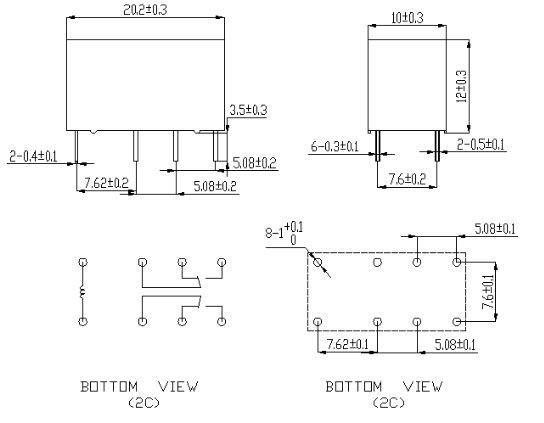 Relé 5VDC, 2/1A, 2x přepínací kontakt