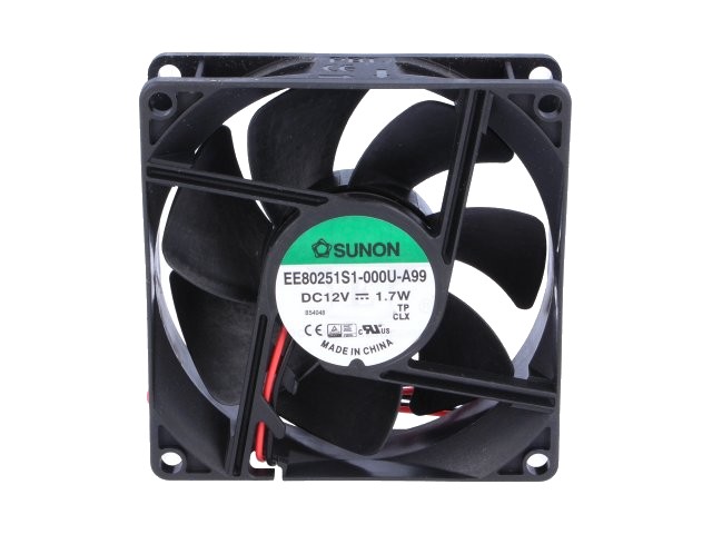 Ventilátor 12VDC, 80x80x25mm, 1.66W, kluzné ložisko.