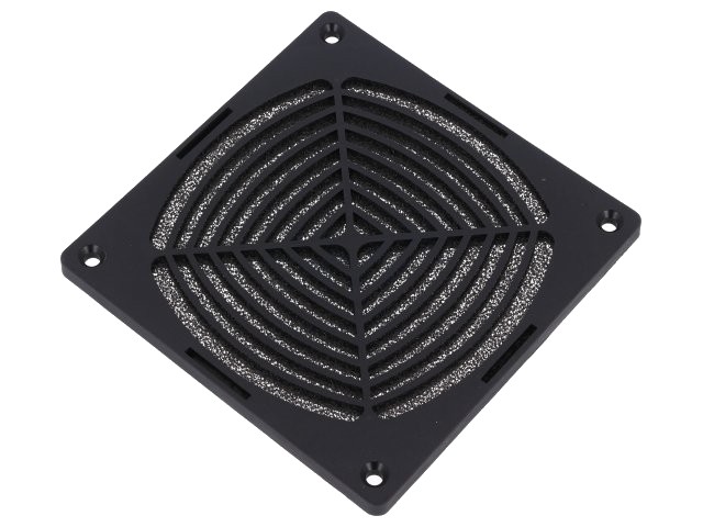 Mřížka k ventilátoru 120x120mm plastová s prachovým filtrem.