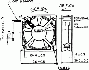 Ventilátor 230VAC, 120x120x38mm, 22W, třecí ložisko.