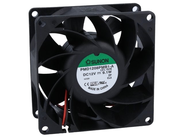 Ventilátor 12VDC, 80x80x38mm, 9.1W, kuličkové ložisko.