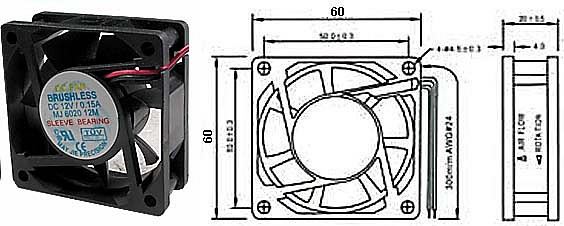 Ventilátor 12VDC, 60x60x20mm, 160mA, 2.16W