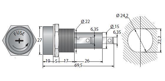 Rozměry montážního otvoru: průměr 24.2/22.4mm