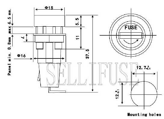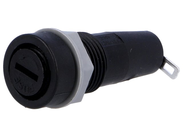 Držák trubičkové pojistky 5x20mm pro montáž na panel.