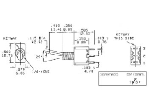 Páčkový spínač s aretací v krajních polohách 3A/250VAC, 1x přepínací kontakt