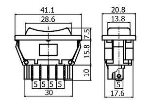 Kolébkový spínač bez aretace v krajních polohách 20A/12VDC, 2x přepínací kontakt