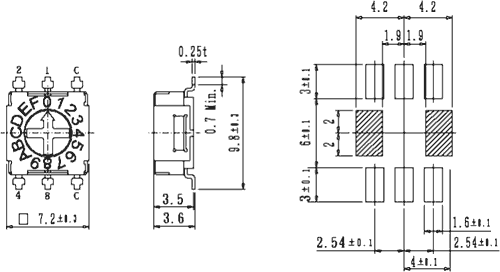 Kódovaný spínač 16 poloh HEX/BCD provedení SMD