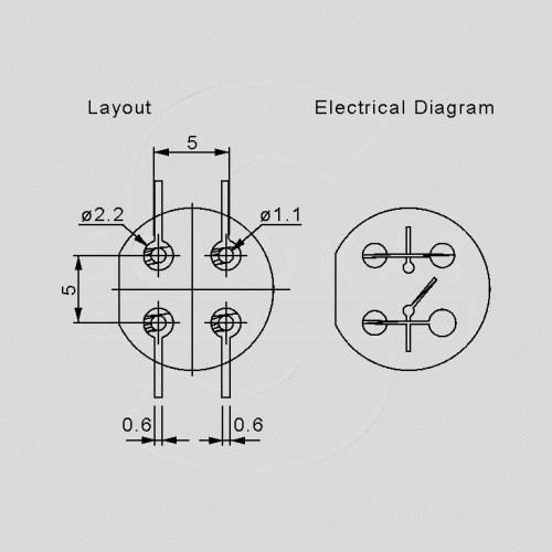 Mikro tlačítko bez aretace 0.1A/32VDC/3VA