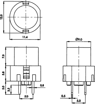 Výška tlačítka (měřeno od PCB): 14.3mm