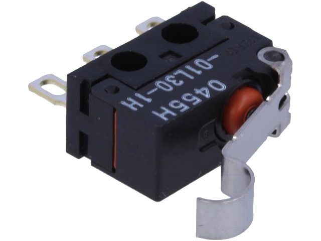 Mikrospínač 30VDC/0,1A, 125VAC/0,1A s rovnou páčkou 13mm se zaobleným koncem
