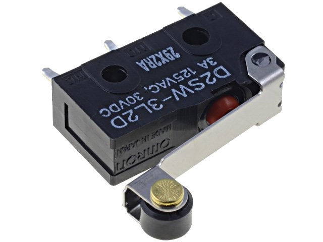 Mikrospínač 30VDC/3A, 125VAC/3A s páčkou 14,5mm a s kladkou, IP67.