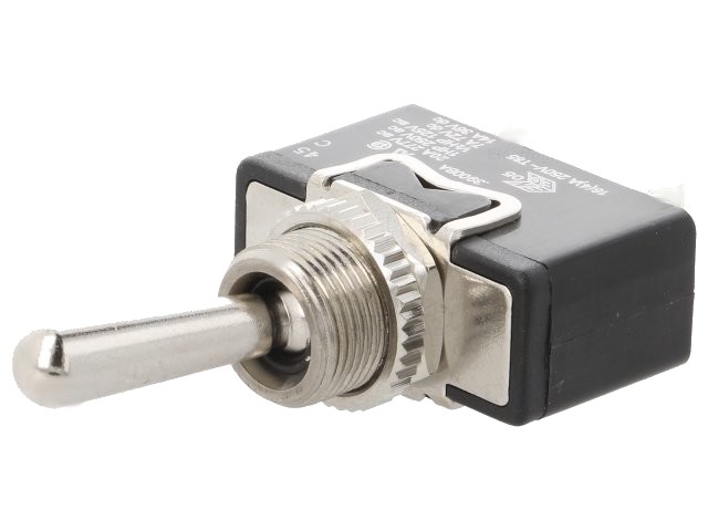 Páčkový spínač s aretací v krajních polohách 16A/250VAC, 1x spínací kontakt