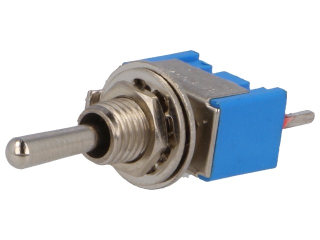 Páčkový spínač s aretací ve všech polohách 3A/250VAC, 1x přepínací kontakt